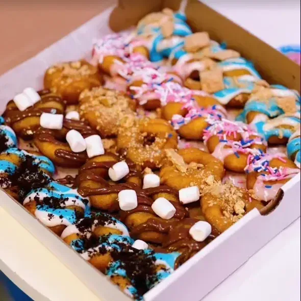 A playful donut shop with oversized creations, wild flavors, and a bright, candy-colored aesthetic built for indulgence (and Instagram).
